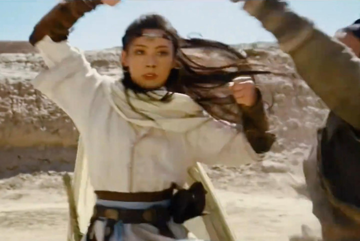 尤其是那场“沙海追凶”的名场面,她骑着汗血马在流沙中疾驰,身后追兵箭雨纷飞,她反手搭弓、侧身避箭的动作一气呵成。