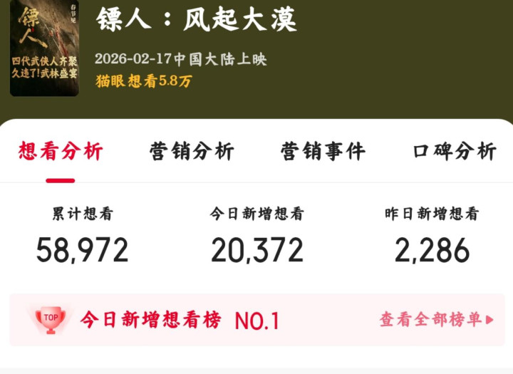 这部电影今天刚定档就有不少观众迫不及待买票观看了,还登上了猫眼新增想看榜第一名。