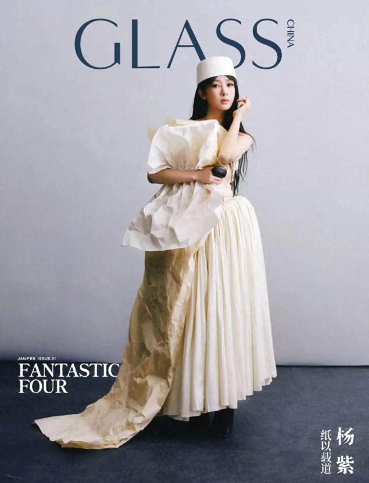 杨紫登封GLASS1.2月合刊封面,这次杂志主题以“四大发明”中的“纸”为主题,整体效果呈现的非常好,很有视觉和记忆点,国墨和宣纸,创意不错,拍的很有质感。
