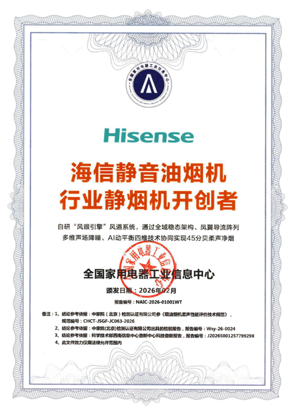 这套系统不仅让闲雅C5静烟机在静音方面脱颖而出,也取得了行业泰斗的高度认同。据悉,海信静音油烟机已斩获3项发明专利、5项实用型专利,30项专利正在苦求中,并通过中国度电询查院的静音、净烟双一级认证。更值得一提的是,海信还讨好中国度电询查院制定了《吸油烟机低声性能评价技能表率》,填补了行业范例空缺。