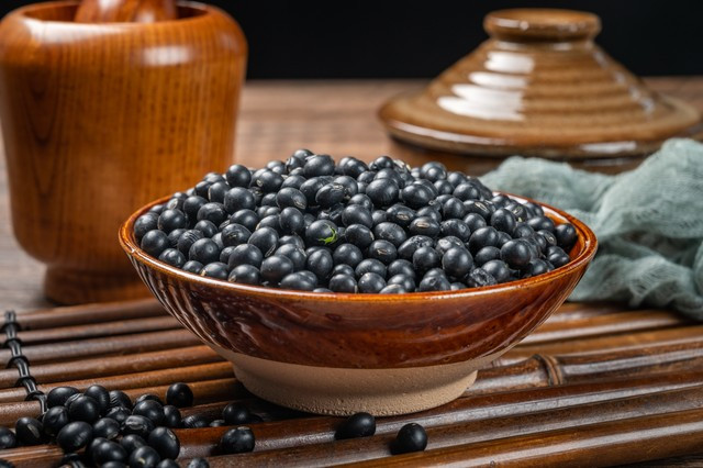 第一个,黑豆,性平味甘,归脾肾经,有补肾乌发、健脾利水等作用。明代中医李时珍的《本草提要》指出,常食黑豆可“长肌肤,益花样,填骨髓,加力气”,因其色黑入肾,形似肾,又善补肾气,故又称为“肾之谷”。