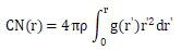 这个公式也被称为积贮配位数函数(Cumulative Distribution Function, CDF)或运转配位数(Running Coordination Number)。公式中,4πr’2·dr‘代表了半径为r’、厚度为dr’的球壳体积,ρg(r`)则是该球壳内的局部粒子数密度。将两者相乘再积分,就得到了从中心(r=0)到半径r的球体内包含的粒子总额。