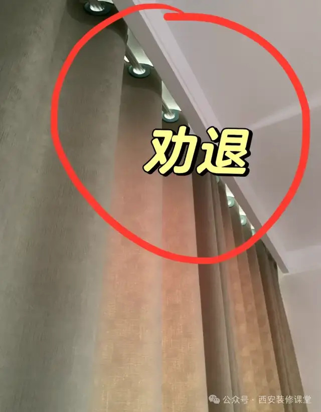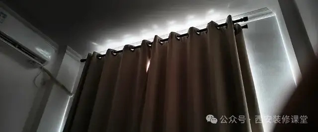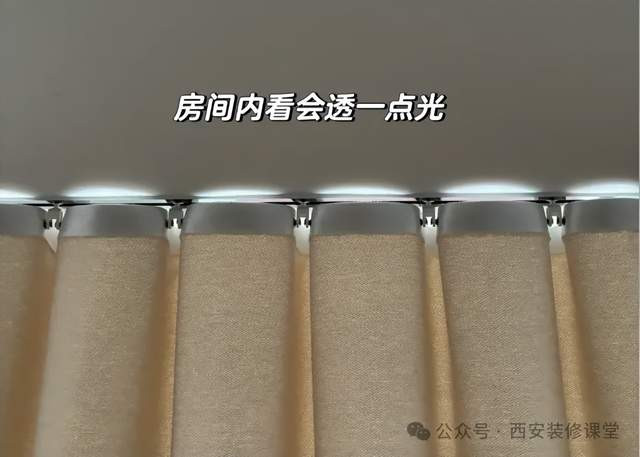 窗帘盒搭配罗马杆是极其不实的作念法,两端无法到头,中间无法交叉,导致即使作念窗帘盒亦然漏光严重。