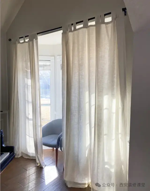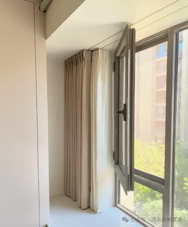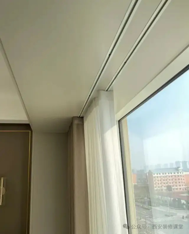 明装轨谈顶部漏光,也不错摄取加极简帘头的形态来惩办。