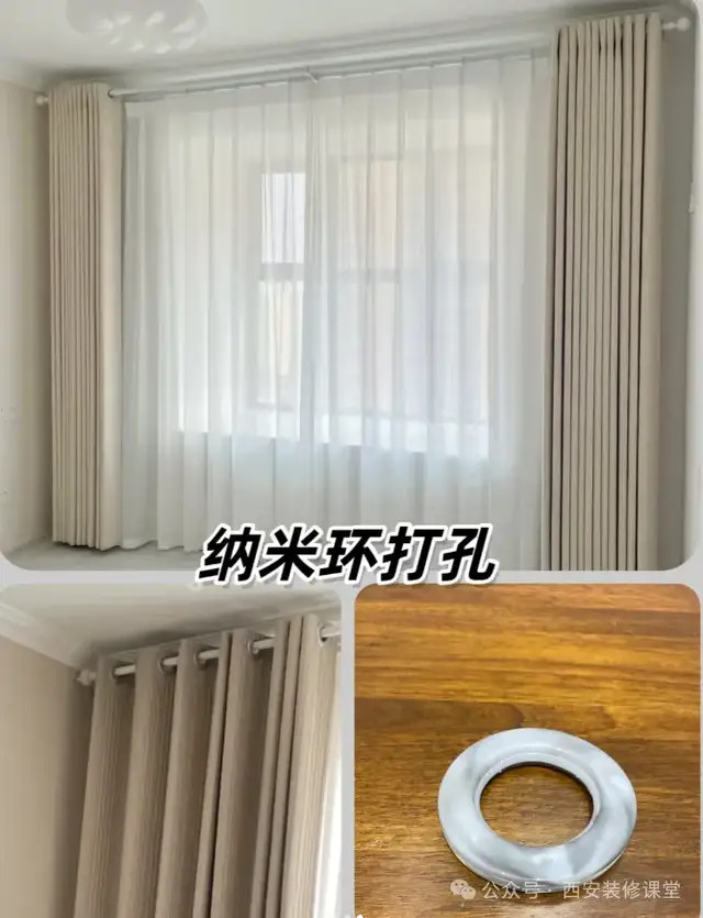 顾名念念义:胜利加工布艺打孔,穿入罗马杆作念法。