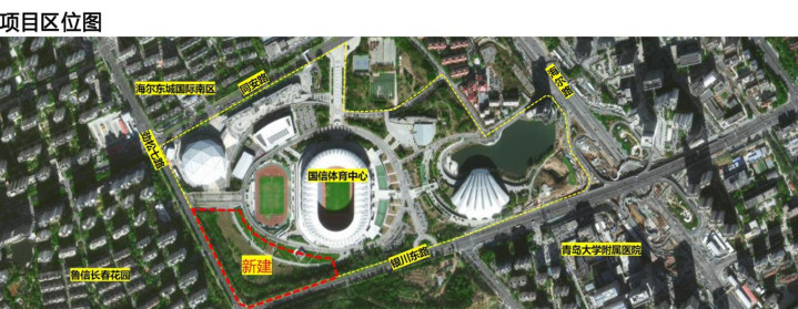 2025年4月3日,青岛市自然资源和规划局就发布该项目规划方案批前公示。根据规划公示,项目选址青岛市崂山区银川东路3号(银川东路以北、劲松七路以东),即国信体育中心西南角,由青岛国信发展(集团)有限责任公司负责建设。