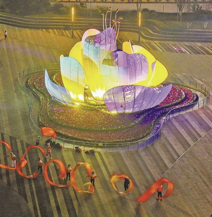 巴南区“山·茶花”广场流光溢彩。