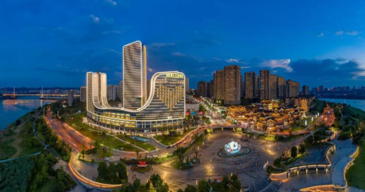 巴南区“山·茶花”广场灯火璀璨。