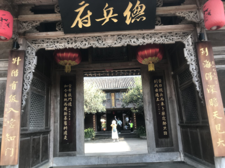 总兵府有前中后三处院落,院中花团锦绣、百花争艳。真可谓:“百花坛里尽芳菲,绿叶红花竞绽开” 。砖石铺地,房屋宽畅亮堂,两个明柱上楹联辩护可辨,“昔时鼎食公侯第 本日寻常匹夫家”,门庭二楼竖牌红底黄字刻有“诰封一品振威将军第” 斗大的刻字。另有“帝家眷格外宸翰九重须福寿 将材真了得云表万仞起楼台” 门庭二楼上竖牌刻有斗大的红底黄字“福寿”二字木牌匾;格子门、格子窗,金碧辉映、砖雕、木雕、靠背椅、木雕柜、木雕床、肩舆、滕编等等生计用的器用。