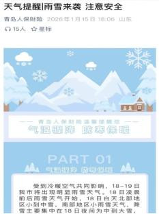 风雨寒冬,初心如炬。人保财险青岛分公司在寒冬里筑起一道有温度的服务防线,让保险保障不仅是一纸合同,更成为可依赖的力量。截至1月19日累计接到报案3000余件,人保财险青岛分公司将持续关注天气及路况变化,以更专业的服务能力、更高效的响应速度和更有温度的服务体验,坚持“人民保险 服务人民”的初心和使命,切实履行金融央企的责任担当,充分发挥保险经济“减震器”和社会“稳定器”功能,全力守护人民群众财产安全。