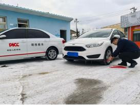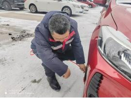 人保财险青岛分公司查勘人员协助客户绑防滑链