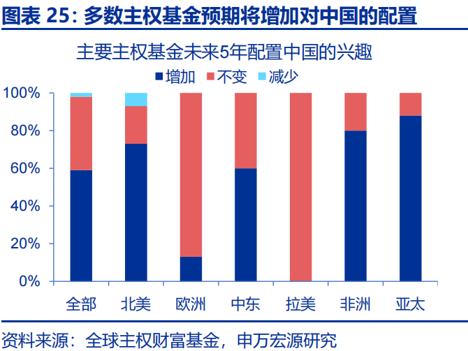 第三,地缘浮松或推动资金裁减对好意思欧的聚拢建立、转向更多元的民众布局,陶冶中国建立的比例。好意思国政策扭捏与制裁器用化,或收缩部分资金对好意思欧资产的建立。2025年拜访闪现,民众主权资产基金对中国投资酷好酷好已彰着高涨,而地缘浮松带来的“散播化需求”或将加速这一程度。