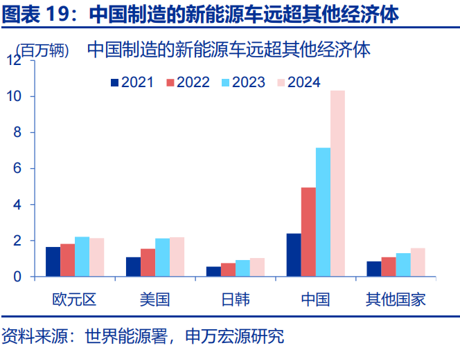 第一,地缘浮松或抬升民众动力安全溢价,并通过强化中国新动力产业的出口上风,继续复旧东谈主民币中弥远增值。中东变局后,列国动力政策或将由“后果优先”转向“安全优先”,愈加爱好动力替代、自主保险与褂讪供给,这使得新动力车、电板、光伏、风电等家具的计谋属性彰着高涨。面前,中国新动力车产量权贵逾越民众其他经济体,在电板、光伏组件、风电装备等范畴出口份额也分袂高达57.3%、71.5%和18.2%。跟着列国加速动力转型和关连开发部署,中国上风产业有望进一步打建国际商场,并通过出口增长、生意顺差改善,进一步对东谈主民币变成复旧。