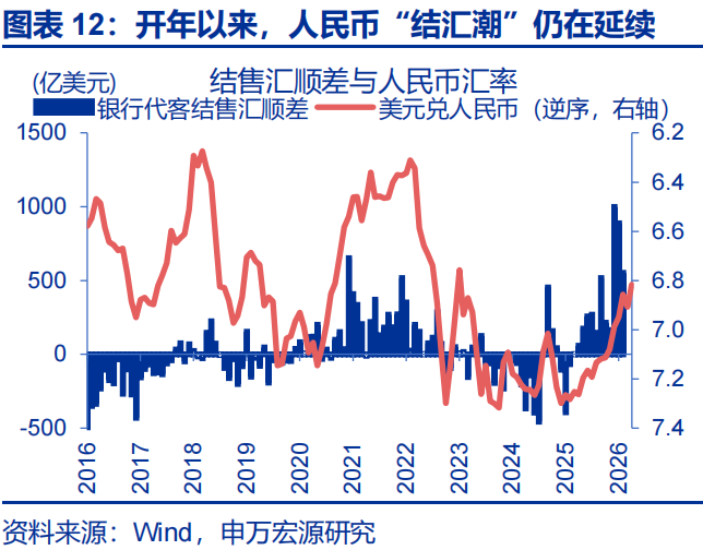 2)东谈主民币近期“韧性”完全的原因有三:第一,基本面视角,中国经济“周期”底部在2025年三季度果决出现,而地缘扰动下我国动力结构的上风,或使我国经济在民众的相对上风进一步突显。第二,资金面视角,“结汇潮”仍在延续,而职权商场的主动型外资也并未在避险神气下大幅外流。第三,加息预期不彊、便利性溢价回落压制下,好意思元反弹相对慈悲,使得东谈主民币濒临的外部压力不大。