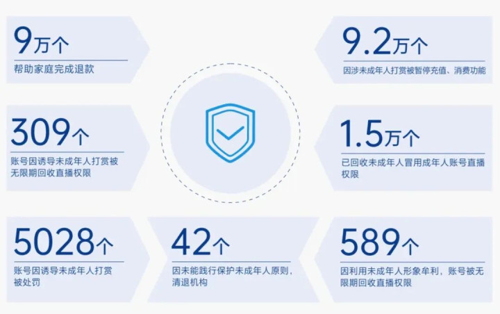 2025年平台已成功帮助9万个家庭完成退款,并对9.2万个涉及未成年人打赏的账号采取了暂停充值等功能限制措施。