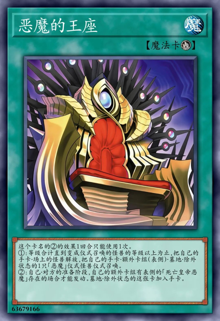 这次更新的是罕见的仪式/灵摆类卡,同样可以使用“恶魔的王座”来召唤,效果还不错出场自带定向“大风暴”,还是光属性的恶魔的确少有。