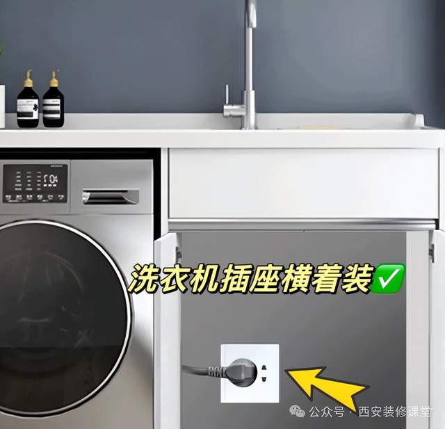 2>洗衣机插座,一般镶嵌式洗衣机,电源和上水都在近邻的柜子里头,此时打孔欢畅电源线穿入,横装如图,与蒸烤箱肖似,泄漏不缠绕,插拔也跟便捷。