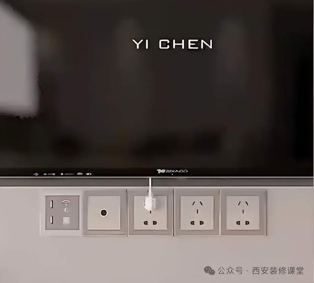 2>电视机插座外露,要是你家是精装修大约果决,把插座作念到了电视机下方况兼外露,此时电视机插座不错倒装,电源线更整都,后期接收电视柜搅扰品也好遮挡。