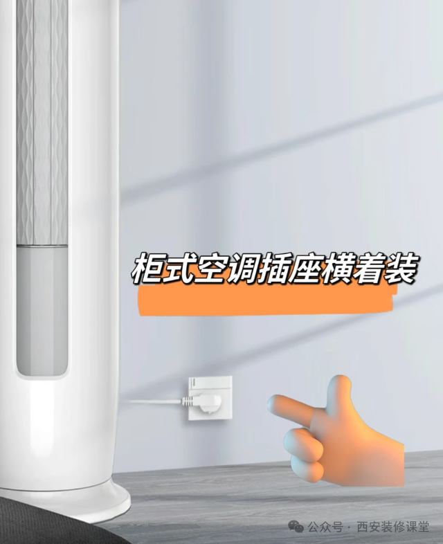 4>小功率柜机空调插座,要是你家柜机小于两匹,是不错用平庸插座,要求合适,就不错如图横装阵势,减少电源线缠绕。然而大于两匹柜机诳骗专用漏保。