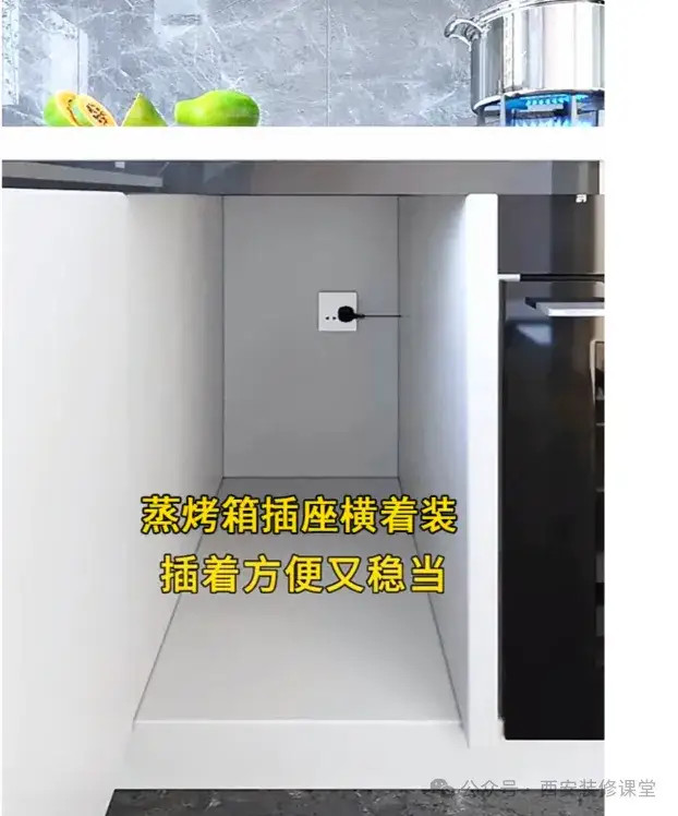 1>蒸烤箱插座,要是你家蒸烤箱插座在控制空间布局,如图,等于横着安设,这么插拔更便捷,况兼电源线也不会有折弯。